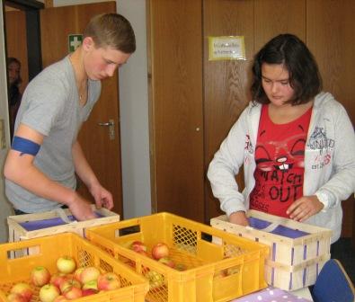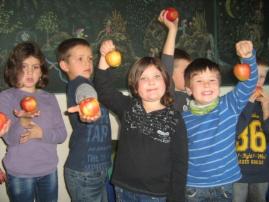 | Wieder organisierte der Förderverein eine Apfelaktion in allen Schulgebäuden. In der Zeit vom 15.10. bis 25.10.12 bekam jeder Schüler einen kostenlosen frischen saftigen Apfel zum Pausenvesper spendiert. | ![]() |