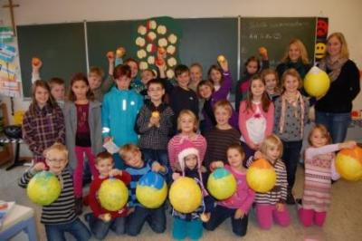 Apfelaktion 2013In der Woche vor und nach den Herbstferien bereicherte der Förderverein das Pausenfrühstück eines jeden Schülers/Schülerin mit einem Apfel aus der Region. Die Klassen 1 und 3 in Ühlingen verbanden die Aktion mit einem Projekt im Fach MeNuK | Bild: Steinhart |