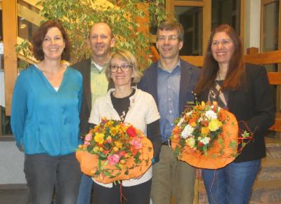 Barbara Krieger und Silvia Heer ( beide 1. Vorsitzende), Michaela Hog (Kassiererin), Astrid Hummel (Schiftführerin)