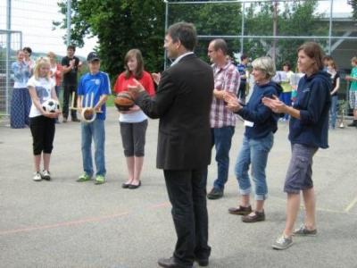 Schulfest am 23.06.12![]() Übergabe des vom Förderverein finanzierten Pausenhof-Fußballtors | ![]() ![]() Flohmarkt |
