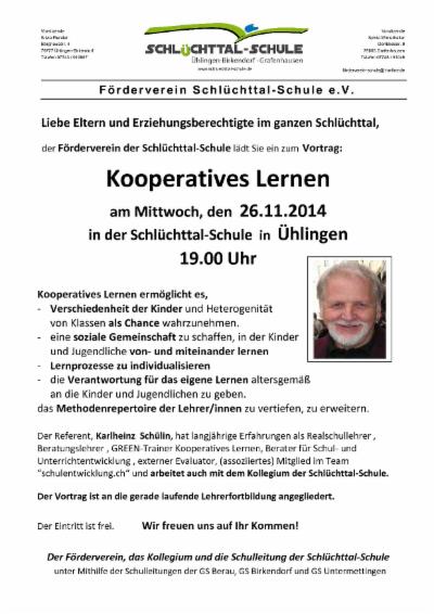 Kooperative LernformenVortrag mit Karlheinz Schülin26.11.2014 19 Uhr Schule Ühlingen | ![]() |